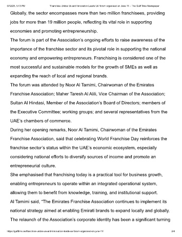 6/12/25, 5:13 PM ‘Franchise Unites Us and Innovation Leads Us’ forum organised on June 11 – The Gulf Time Newspaper