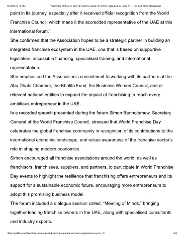 6/12/25, 5:13 PM ‘Franchise Unites Us and Innovation Leads Us’ forum organised on June 11 – The Gulf Time Newspaper