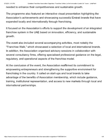 6/12/25, 5:14 PM Emirates Franchise Association Organises ‘Franchise Unites Us And Innovation Leads Us’ Forum - UrduPoint
