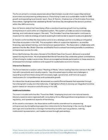 training, and institutional support. She said, "The Emirates Franchise Association continues to