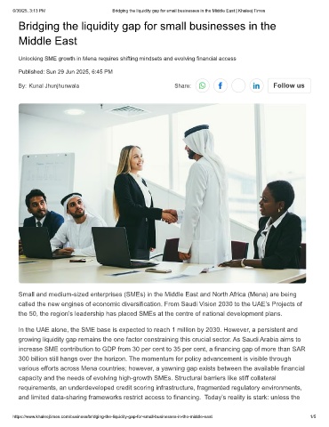 6/30/25, 3:13 PM Bridging the liquidity gap for small businesses in the Middle East | Khaleej Times