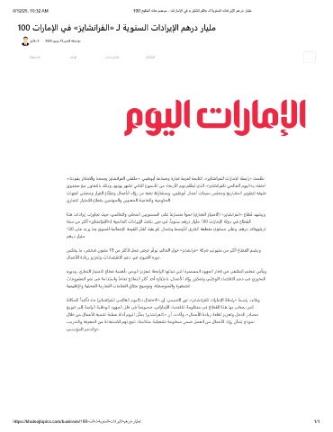 100 تارﺎﻣإلا ﻲﻓ «ﺰﻳﺎﺸﻧاﺮﻔﻟا» ـﻟ ﺔﻳﻮﻨﺴﻟا تاداﺮﻳإلا ﻢﻫرد رﺎﻴﻠﻣ
