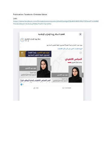 Publication: Facebook- Emirates Vision Link: https://www.facebook.com/Emiratesvision/posts/pfbid02zsVgs2QL4tAHiKHHWpY3DbvsR7mNt8t8 FAJULE8Nw61AC8UeqM8BeM3ZPJ7Qm8Rhl
