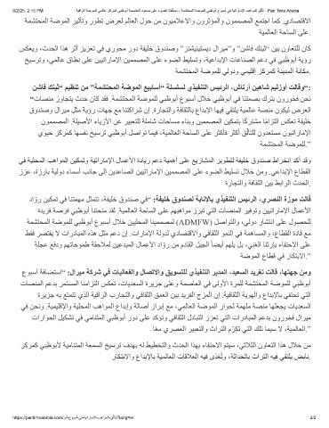 6/2/25, 2:15 PM ﺔﯾﻗارﻟا ﺔﺿوﻣﻠﻟ ﻲﻣﻟﺎﻋ زﻛرﻣﻛ ﻲﺑظوﺑأ ﺔﻣﺻﺎﻌﻟا دوﻌﺻ ﻰﻠﻋ ءوﺿﻟا ﺔط ّ ﻠﺳﻣ ، ﺔﻣﺷﺗﺣﻣﻟا ﺔﺿوﻣﻠﻟ ﻲﺑظوﺑأ عوﺑﺳأ ﻲﻓ ﺔﯾﺗارﺎﻣﻹا بھاوﻣﻟا ﻖ ّ ﻟﺄﺗ - Pan Time Arabia