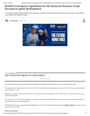 6/19/25, 8:31 AM Khalifa Fund opens registration for 8th Venturist Summer Camp focused on game development | PocketGamer.biz