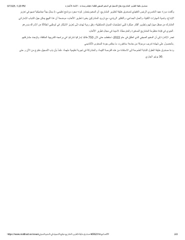 مﮭﺗﻛرﺎﺷﻣ تﺟ ّ وﺗو ،ﺔﻔﺛﻛﻣﻟا ﺔﯾﺑﯾردﺗﻟا ﮫﺟﻣارﺑ ﻲﻓ اوﻛرﺎﺷ ﺎﯾﺗارﺎﻣإ ﺎﺑﻟﺎط 750 نﻵا ﻰﺗﺣ بطﻘﺗﺳا ،2022 مﺎﻋ ﻲﻓ ﻖﻠطﻧا يذﻟا ﻲﻔﯾﺻﻟا مﯾﺧﻣﻟا نأ ﻰﻟإ ةرﺎﺷﻹا ردﺟﺗ