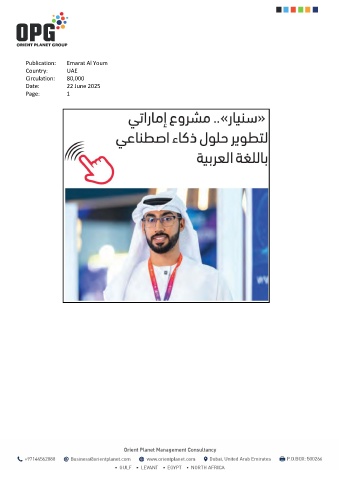 Publication: Emarat Al Youm Country: UAE Circulation: 80,000 Date: 22 June 2025 Page: 1