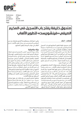 Publication: Al Bayan Country: UAE Circulation: 88,000 Date: 13 June 2025 Page: 2