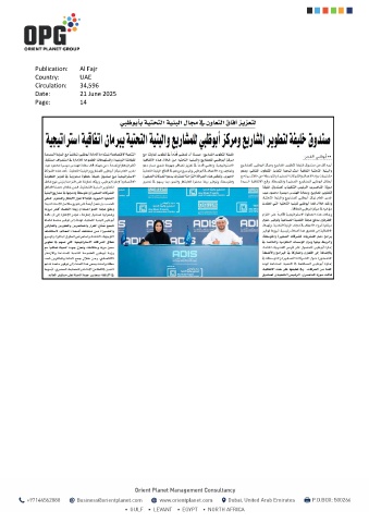 Publication: Al Fajr Country: UAE Circulation: 34,596 Date: 21 June 2025 Page: 14
