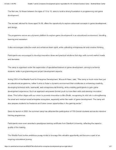 6/13/25, 1:09 PM Khalifa Fund for Enterprise Development opens registration for 8th Venturist Summer Camp - Aletihad News Center