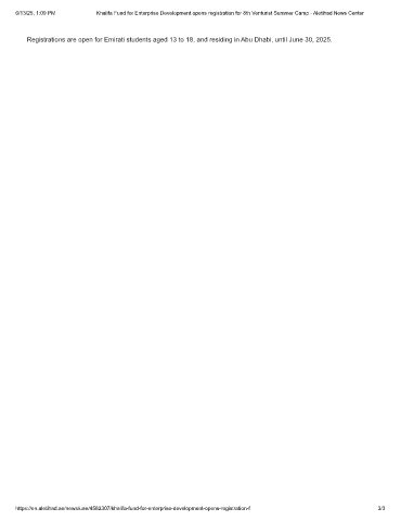 6/13/25, 1:09 PM Khalifa Fund for Enterprise Development opens registration for 8th Venturist Summer Camp - Aletihad News Center