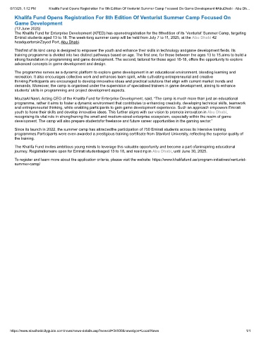 6/13/25, 1:12 PM Khalifa Fund Opens Registration For 8th Edition Of Venturist Summer Camp Focused On Game Development #AbuDhabi - Abu Dh…