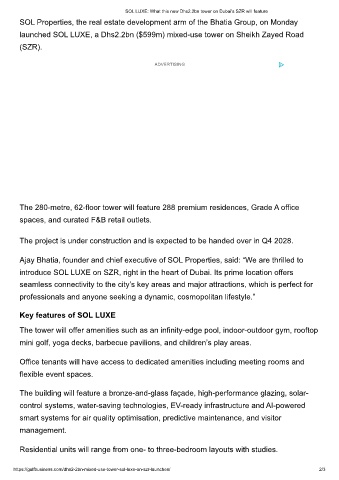https://gulfbusiness.com/dhs2-2bn-mixed-use-tower-sol-luxe-on-szr-launches/                                2/3
