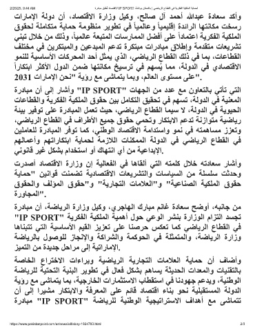 "IP SPORT" ﺔﯾﺮﻜﻔﻟا ﺔﯿﻜﻠﻤﻟا ﺔﯿﻤھأ لﻮﺣ ﻲﻋﻮﻟا ﺮﺸﻨﺑ ةرازﻮﻟا ماﺰﺘﻟا ﺪﺴﺠﺗ