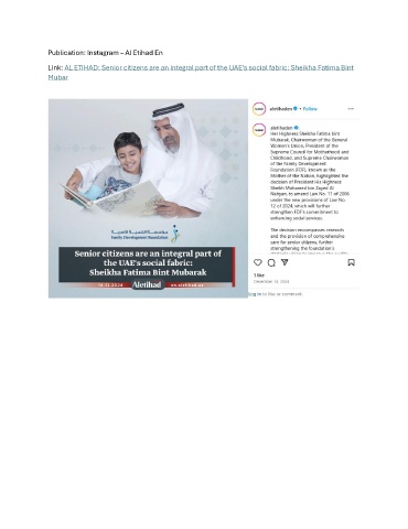 Link: AL ETIHAD: Senior citizens are an integral part of the UAE's social fabric: Sheikha Fatima Bint
