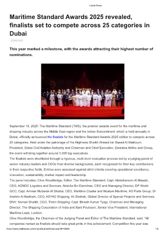 Dubai, officially announced the finalists for the Maritime Standard Awards 2025 edition to compete across