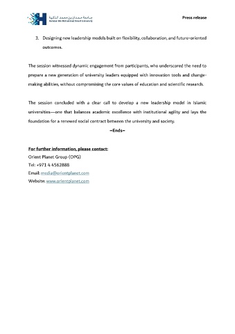 The session concluded with a clear call to develop a new leadership model in Islamic