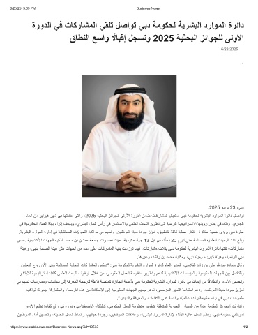 مﺎﻌﻟا نﻣ رﯾارﺑﻓ رﮭﺷ ﻲﻓ ﺎﮭﺗﻘﻠطأ ﻲﺗﻟاو ،2025 ﺔﯾﺛﺣﺑﻟا زﺋاوﺟﻠﻟ ﻰﻟوﻷا ةرودﻟا نﻣﺿ تﺎﻛرﺎﺷﻣﻟا لﺎﺑﻘﺗﺳا ﻲﺑد ﺔﻣوﻛﺣﻟ ﺔﯾرﺷﺑﻟا دراوﻣﻟا ةرﺋاد لﺻاوﺗ