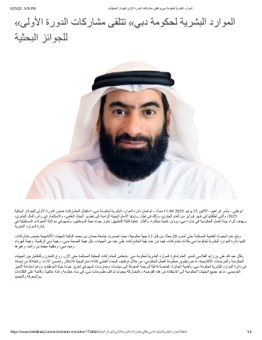 6/25/25, 3:09 PM «ﺔﯾﺛﺣﺑﻟا زﺋاوﺟﻠﻟ ﻰﻟوﻷا ةرودﻟا تﺎﻛرﺎﺷﻣ ﻰﻘﻠﺗﺗ «ﻲﺑد ﺔﻣوﻛﺣﻟ ﺔﯾرﺷﺑﻟا دراوﻣﻟا