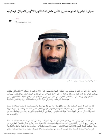 6/25/25, 3:06 PM «ﺔﯾﺛﺣﺑﻟا زﺋاوﺟﻠﻟ ﻰﻟوﻷا ةرودﻟا تﺎﻛرﺎﺷﻣ ﻰﻘﻠﺗﺗ «ﻲﺑد ﺔﻣوﻛﺣﻟ ﺔﯾرﺷﺑﻟا دراوﻣﻟا