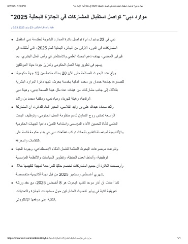 6/25/25, 3:06 PM "تارﺎﻣﻹا ءﺎﺑﻧأ ﺔﻟﺎﻛو | 2025 ﺔﯾﺛﺣﺑﻟا ةزﺋﺎﺟﻟا ﻲﻓ تﺎﻛرﺎﺷﻣﻟا لﺎﺑﻘﺗﺳا لﺻاوﺗ "ﻲﺑد دراوﻣ