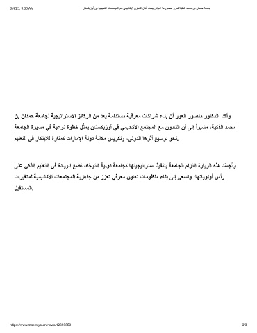 6/4/25, 9:30 AM نﺎﺗﺳﻛﺑزوأ ﻲﻓ ﺔﯾﻣﯾﻠﻌﺗﻟا تﺎﺳﺳؤﻣﻟا ﻊﻣ ﻲﻣﯾدﺎﻛﻷا نوﺎﻌﺗﻟا قﺎﻓآ ثﺣﺑﺑ ﻲﻟودﻟا ﺎھروﺿﺣ ززﻌﺗ ﺔﯾﻛذﻟا دﻣﺣﻣ نﺑ نادﻣﺣ ﺔﻌﻣﺎﺟ