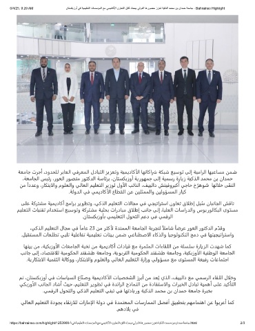 6/4/25, 9:29 AM نﺎﺗﺳﻛﺑزوأ ﻲﻓ ﺔﯾﻣﯾﻠﻌﺗﻟا تﺎﺳﺳؤﻣﻟا ﻊﻣ ﻲﻣﯾدﺎﻛﻷا نوﺎﻌﺗﻟا قﺎﻓآ ثﺣﺑﺑ ﻲﻟودﻟا ﺎھروﺿﺣ ززﻌﺗ ﺔﯾﻛذﻟا دﻣﺣﻣ نﺑ نادﻣﺣ ﺔﻌﻣﺎﺟ - Bahrainso Highlight