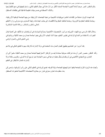 6/4/25, 9:28 AM موﯾﻟا تارﺎﻣﻹا – نﺎﺗﺳﻛﺑزوأ ﻲﻓ ﺔﯾﻣﯾﻠﻌﺗﻟا تﺎﺳﺳؤﻣﻟا ﻊﻣ ﻲﻣﯾدﺎﻛﻷا نوﺎﻌﺗﻟا قﺎﻓآ ثﺣﺑﺑ ﻲﻟودﻟا ﺎھروﺿﺣ ززﻌﺗ ﺔﯾﻛذﻟا دﻣﺣﻣ نﺑ نادﻣﺣ ﺔﻌﻣﺎﺟ