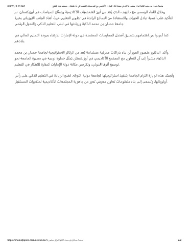 6/4/25, 9:28 AM ﺞﯾﻠﺧﻟا تﺎﻋوﺿوﻣ - نﺎﺗﺳﻛﺑزوأ ﻲﻓ ﺔﯾﻣﯾﻠﻌﺗﻟا تﺎﺳﺳؤﻣﻟا ﻊﻣ ﻲﻣﯾدﺎﻛﻷا نوﺎﻌﺗﻟا قﺎﻓآ ثﺣﺑﺑ ﻲﻟودﻟا ﺎھروﺿﺣ ززﻌﺗ ﺔﯾﻛذﻟا دﻣﺣﻣ نﺑ نادﻣﺣ ﺔﻌﻣﺎﺟ