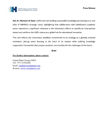 H.E. Dr. Mansoor Al Awar reaffirmed that building sustainable knowledge partnerships is a core
