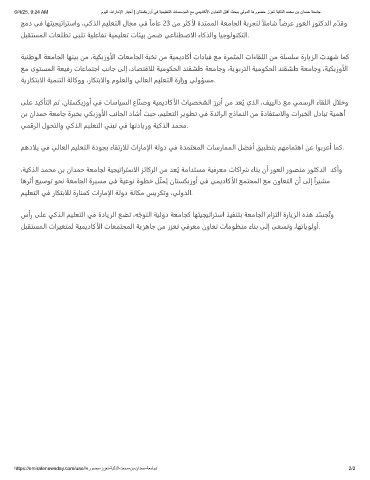 6/4/25, 9:24 AM موﯾﻟا تارﺎﻣﻹا رﺎﺑﺧأ | نﺎﺗﺳﻛﺑزوأ ﻲﻓ ﺔﯾﻣﯾﻠﻌﺗﻟا تﺎﺳﺳؤﻣﻟا ﻊﻣ ﻲﻣﯾدﺎﻛﻷا نوﺎﻌﺗﻟا قﺎﻓآ ثﺣﺑﺑ ﻲﻟودﻟا ﺎھروﺿﺣ ززﻌﺗ ﺔﯾﻛذﻟا دﻣﺣﻣ نﺑ نادﻣﺣ ﺔﻌﻣﺎﺟ
