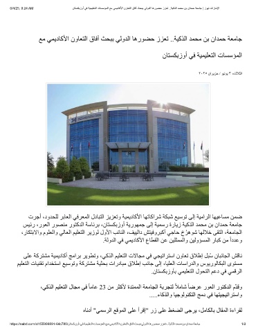6/4/25, 9:24 AM نﺎﺗﺳﻛﺑزوأ ﻲﻓ ﺔﯾﻣﯾﻠﻌﺗﻟا تﺎﺳﺳؤﻣﻟا ﻊﻣ ﻲﻣﯾدﺎﻛﻷا نوﺎﻌﺗﻟا قﺎﻓآ ثﺣﺑﺑ ﻲﻟودﻟا ﺎھروﺿﺣ ززﻌﺗ ..ﺔﯾﻛذﻟا دﻣﺣﻣ نﺑ نادﻣﺣ ﺔﻌﻣﺎﺟ | زوﯾﻧ تارﺎﻣﻹا
