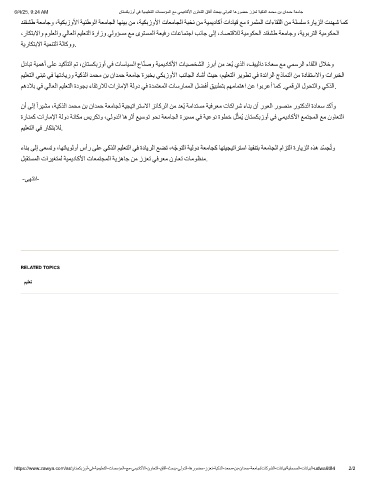 دﻧﻘﺷط ﺔﻌﻣﺎﺟو ،ﺔﯾﻛﺑزوﻷا ﺔﯾﻧطوﻟا ﺔﻌﻣﺎﺟﻟا ﺎﮭﻧﯾﺑ نﻣ ،ﺔﯾﻛﺑزوﻷا تﺎﻌﻣﺎﺟﻟا ﺔﺑﺧﻧ نﻣ ﺔﯾﻣﯾدﺎﻛأ تادﺎﯾﻗ ﻊﻣ ةرﻣﺛﻣﻟا تاءﺎﻘﻠﻟا نﻣ ﺔﻠﺳﻠﺳ ةرﺎﯾزﻟا تدﮭﺷ ﺎﻣﻛ