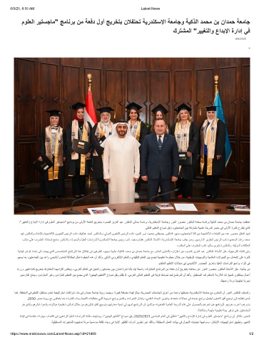 ،"رﯾﯾﻐﺗﻟاو عادﺑﻹا ةرادإ ﻲﻓ موﻠﻌﻟا رﯾﺗﺳﺟﺎﻣ" ﺞﻣﺎﻧرﺑ نﻣ ﻰﻟوﻷا ﺔﻌﻓدﻟا ﺞﯾرﺧﺗﺑ ،هوﺻﻧﻗ زﯾزﻌﻟا دﺑﻋ روﺗﻛدﻟا ﻲﻟﺎﻌﻣ ﺔﺳﺎﺋرﺑ ،ﺔﯾردﻧﻛﺳﻹا ﺔﻌﻣﺎﺟو روﻌﻟا روﺻﻧﻣ روﺗﻛدﻟا ةدﺎﻌﺳ ﺔﺳﺎﺋرﺑ ﺔﯾﻛذﻟا دﻣﺣﻣ نﺑ نادﻣﺣ ﺔﻌﻣﺎﺟ تﻠﻔﺗﺣا