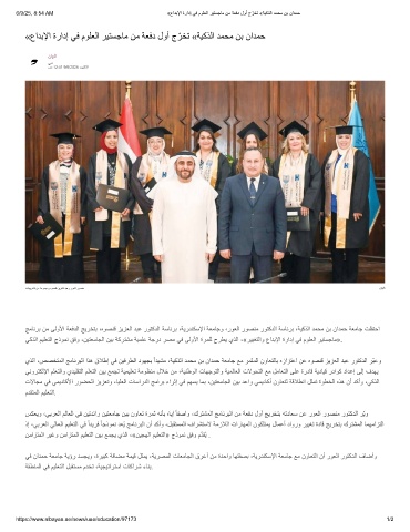 «عاﺪﺑﻹا ةرادإ ﻲﻓ مﻮﻠﻌﻟا ﺮﯿﺘﺴﺟﺎﻣ ﻦﻣ ﺔﻌﻓد لوأ ج ّ ﺮﺨﺗ «ﺔﯿﻛﺬﻟا ﺪﻤﺤﻣ ﻦﺑ ناﺪﻤﺣ