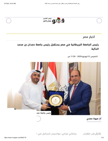 6/13/25, 10:43 AM ﺔﯾﻛذﻟا دﻣﺣﻣ نﺑ نادﻣﺣ ﺔﻌﻣﺎﺟ سﯾﺋر لﺑﻘﺗﺳﯾ رﺻﻣ ﻲﻓ ﺔﯾﻧﺎطﯾرﺑﻟا ﺔﻌﻣﺎﺟﻟا سﯾﺋر