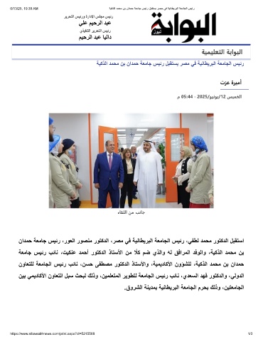 6/13/25, 10:39 AM ﺔﯾﻛذﻟا دﻣﺣﻣ نﺑ نادﻣﺣ ﺔﻌﻣﺎﺟ سﯾﺋر لﺑﻘﺗﺳﯾ رﺻﻣ ﻲﻓ ﺔﯾﻧﺎطﯾرﺑﻟا ﺔﻌﻣﺎﺟﻟا سﯾﺋر