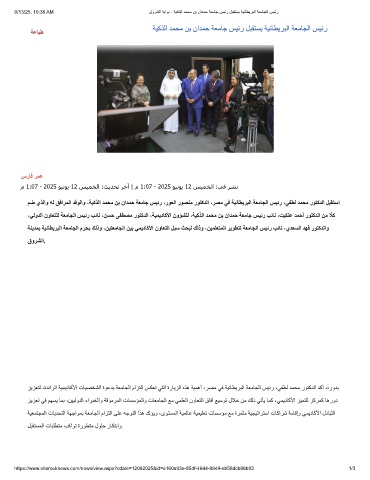 6/13/25, 10:38 AM قورﺷﻟا ﺔﺑاوﺑ - ﺔﯾﻛذﻟا دﻣﺣﻣ نﺑ نادﻣﺣ ﺔﻌﻣﺎﺟ سﯾﺋر لﺑﻘﺗﺳﯾ ﺔﯾﻧﺎطﯾرﺑﻟا ﺔﻌﻣﺎﺟﻟا سﯾﺋر