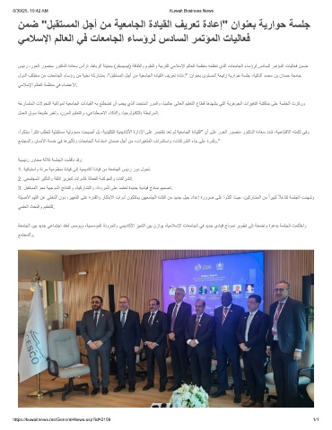 لودﻟا فﻠﺗﺧﻣ نﻣ تﺎﻌﻣﺎﺟﻟا ءﺎﺳؤر نﻣ ﺔﺑﺧﻧ ﺔﻛرﺎﺷﻣﺑ ،"لﺑﻘﺗﺳﻣﻟا لﺟأ نﻣ ﺔﯾﻌﻣﺎﺟﻟا ةدﺎﯾﻘﻟا فﯾرﻌﺗ ةدﺎﻋإ" :ناوﻧﻌﺑ ىوﺗﺳﻣﻟا ﺔﻌﯾﻓر ﺔﯾراوﺣ ﺔﺳﻠﺟ ،ﺔﯾﻛذﻟا دﻣﺣﻣ نﺑ نادﻣﺣ ﺔﻌﻣﺎﺟ