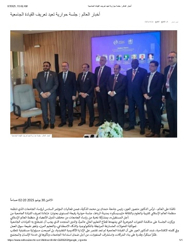 ﻪﻤﻈﻨﺗ يﺬﻟا تﺎﻌﻣﺎﺠﻟا ءﺎﺳؤﺮﻟ سدﺎﺴﻟا ﺮﻤﺗﺆﻤﻟا تﺎيﻟﺎﻌﻓ ﻦﻤﺿ ،ﺔيﻛﺬﻟا ﺪﻤﺤﻣ ﻦﺑ ناﺪﻤﺣ ﺔﻌﻣﺎﺟ ﺲيﺋر ،رﻮﻌﻟا رﻮﺼﻨﻣ رﻮﺘﻛﺪﻟا سأﺮﺗ - ﻢﻟﺎﻌﻟا لىﻋ ةﺬﻓﺎﻧ
