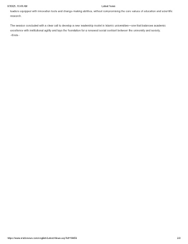 The session concluded with a clear call to develop a new leadership model in Islamic universities—one that balances academic