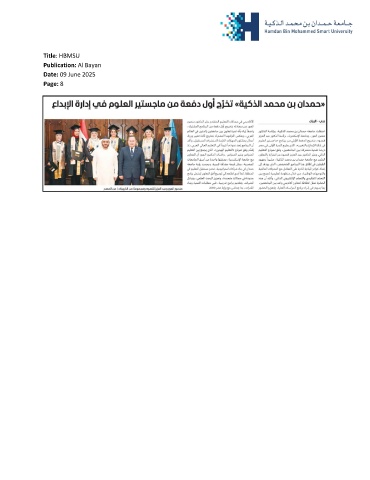 Title: HBMSU Publication: Al Bayan Date: 09 June 2025 Page: 8