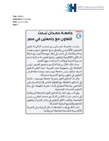 Title: HBMSU Publication: Al Khaleej Date: 12 June 2025 Page: 7