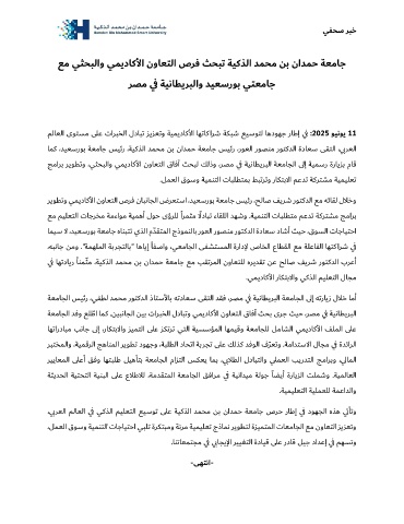 جمارب ريوطتو ،يثحبلاو يميداك لأا نواعتلا قافآ ثحبل كلذو ،رصم ي ف ةيناطيربلا ةعماجلا ىلإ ةيمسر ةرايزب ماق