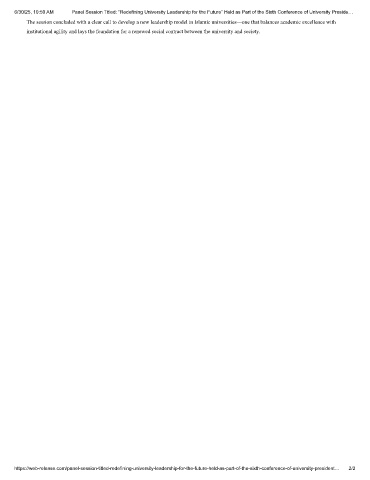 6/30/25, 10:50 AM Panel Session Titled: “Redefining University Leadership for the Future” Held as Part of the Sixth Conference of University Preside…