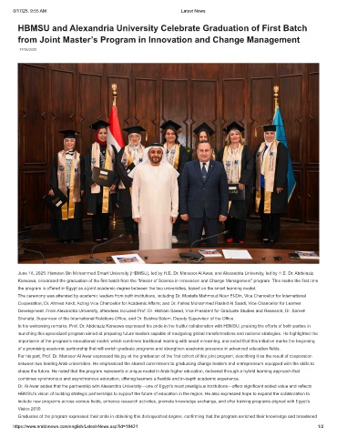 June 16, 2025: Hamdan Bin Mohammed Smart University (HBMSU), led by H.E. Dr. Mansoor Al Awar, and Alexandria University, led by H.E. Dr. Abdelaziz