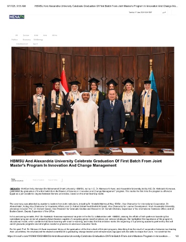https://menafn.com/1109681565/HBMSU-And-Alexandria-University-Celebrate-Graduation-Of-First-Batch-From-Joint-Masters-Program-In-Innovation-… 1/2