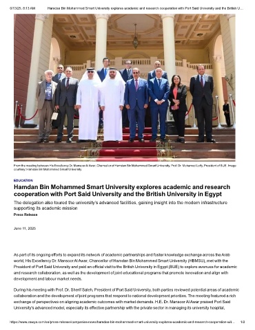 6/13/25, 8:13 AM Hamdan Bin Mohammed Smart University explores academic and research cooperation with Port Said University and the British U…