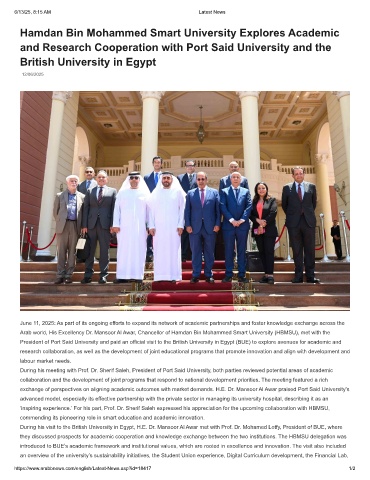 exchange of perspectives on aligning academic outcomes with market demands. H.E. Dr. Mansoor Al Awar praised Port Said University's