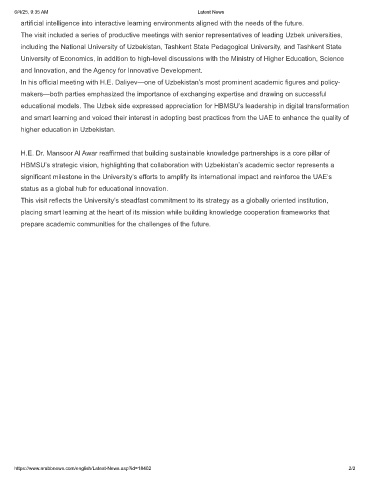 educational models. The Uzbek side expressed appreciation for HBMSU’s leadership in digital transformation